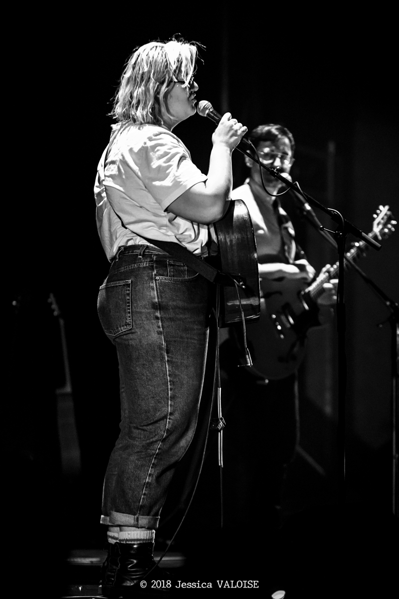 Entre deux morceaux, elle discute avec son guitariste, Joseph Marchand, seul accompagnateur sur scène. Tout semble improvisé mais nous laisse aussi penser à un jeu théâtrale, où la profonde mélancolie de la voix chantée de Safia Nolin laisse place à la douce candeur de sa voix parlée, remplie d’un humour innocent et loufoque qui rend le public hilare.